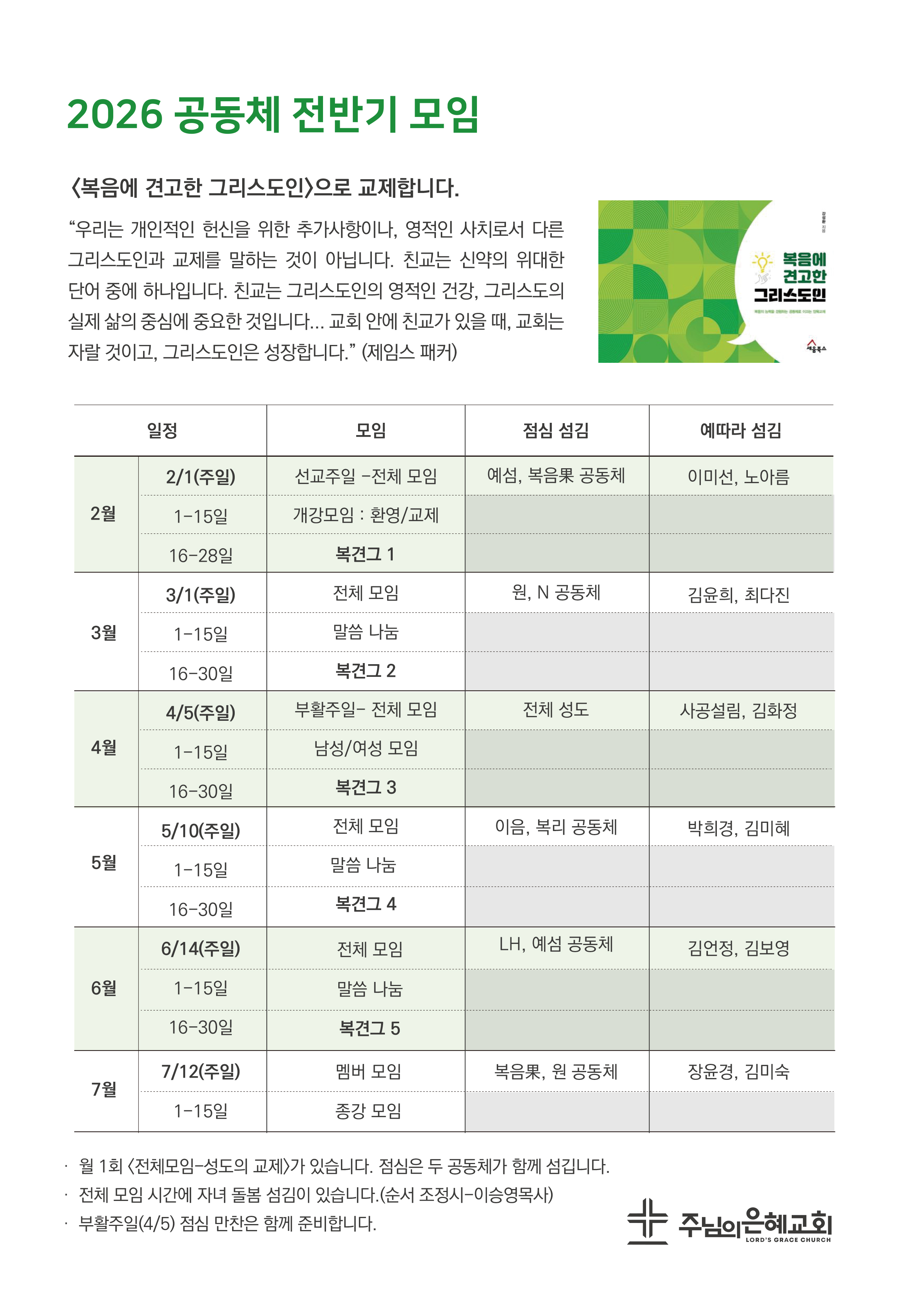 2026 전반기 공동체 모임 안내